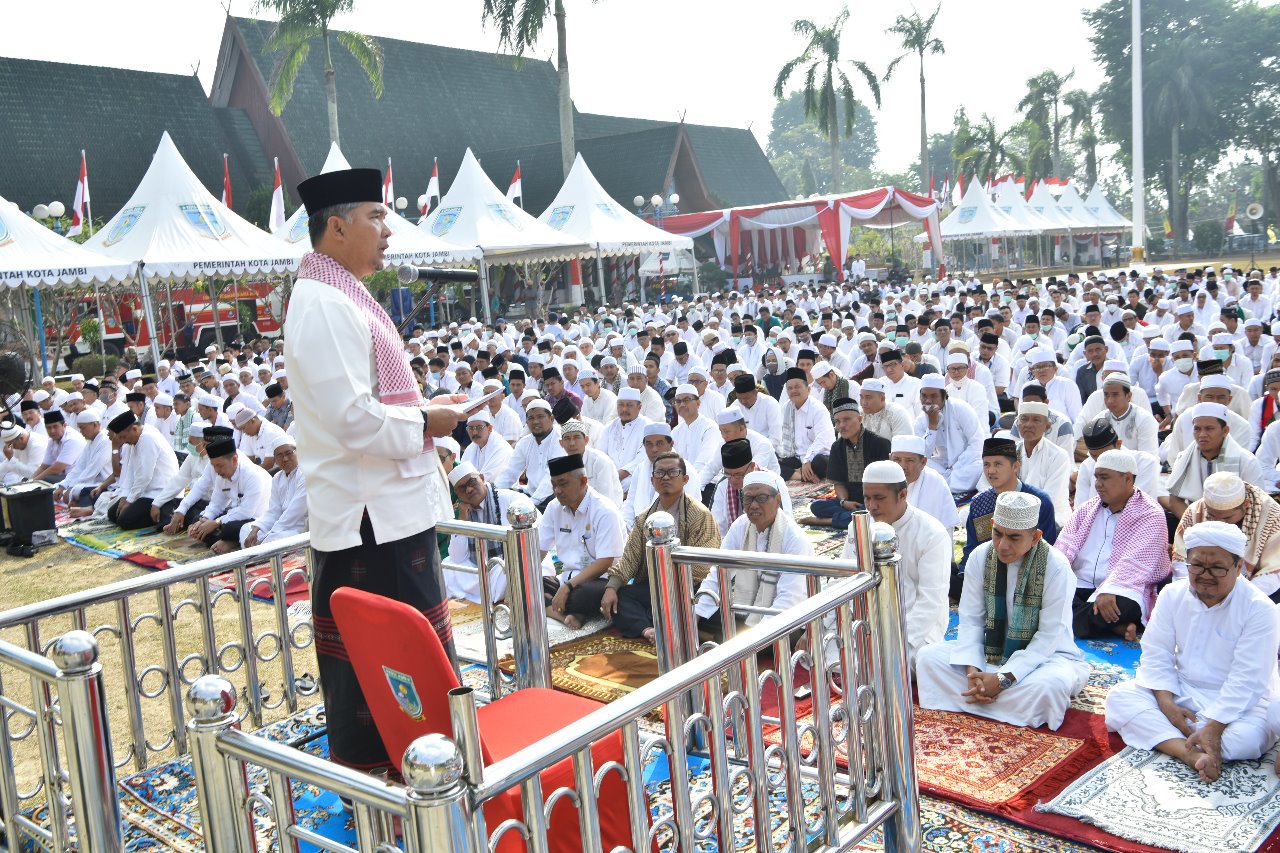 “Kami dari pemerintah kota bersama para tokoh agama serta berbagai elemen masyarakat di Kota Jambi melaksanakan salat Istisqa, bermohon kepada Allah SWT agar turun hujan dan Kota Jambi dijauhkan dari dampak kabut asap,” ujar Wali Kota Jambi, Syarif Fasha.