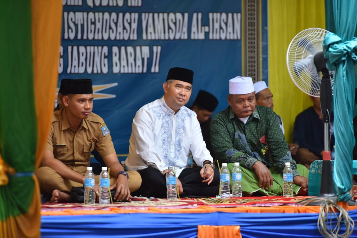 Desa Sungai Gebar Barat Kecamatan Kuala Betara tersebut, turut dihadiri Pimpinan Cabang Nahdhatul Ulama (NU) Kabupaten Tanjabbar, Drs. Mahfud, M.Ag., KH. Ujang Ikhsan, Pimpinan Istighosah Akbar ke-XX Yasmida Al-Ihsan, Pengurus Yasmida Tanjab Barat I, II, dan III, ulama serta tokoh masyarakat Tanjung Jabung Barat.