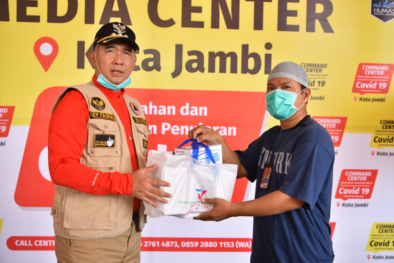 Pemerintah Kota Jambi  membagikan masker dan supplement untuk jurnalis dan insan media. Masker itu merupakan salah satu upaya melindungi jurnalis dan insan media saat bertugas di tengah pandemi corona. Masker dan supplement itu diserahkan langsung oleh Walikota Jambi, Syarif Fasha di Posko Gugus Tugas Covid-19 Kota Jambi, di Mako Damkar dan Penyelamatan, Sabtu (4/4).