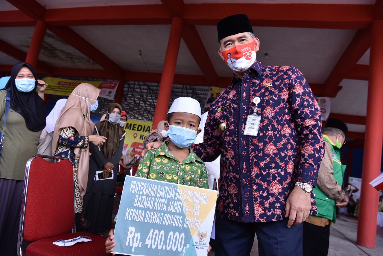 Pemerintah Kota Jambi bersama Badan Amil Zakat Nasional (Baznas) Kota Jambi kembali melaksanakan kegiatan Penyaluran Bantuan Biaya Pendidikan Tahap XIX Tahun 2020 bagi siswa-siswi kurang mampu setingkat SD/MI sederajat, SMP/MTs sederajat, SMA/MA sederajat, negeri maupun swasta, serta mahasiswa S1 khusus Mudim (penjaga masjid).