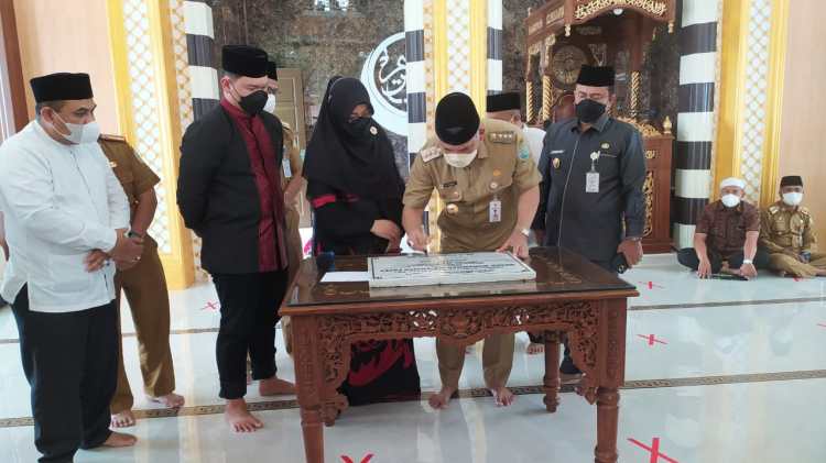 SEPUTARJAMBI.COM – Akhirnya Masjid Muhammad Fabiansyah Putra diresmikan pemakaiannya oleh Wali Kota Jambi, Sy Fasha, Selasa (21/9/2021).
