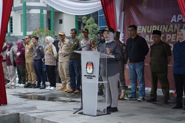 SEPUTARJAMBI.COM-Penjabat (Pj) Wali Kota Jambi, Sri Purwaningsih memimpin Apel Siaga Masa Tenang Pilkada dan Pelepasan Tim Penertiban Alat Peraga Kampanye (APK) Pilkada Serentak tahun 2024 yang digelar Komisi Pemilihan Umum (KPU) Kota Jambi, di lapangan utama Balaikota Jambi, Minggu pagi (24/11/2024).