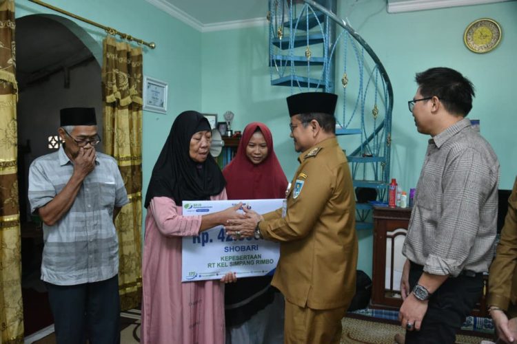 Kali ini, Wali Kota Maulana menyerahkan santunan JMK kepada ahli waris almarhum Dr. Shobari, Ketua RT 19 Kelurahan Simpang Rimbo, Kecamatan Alam Barajo.