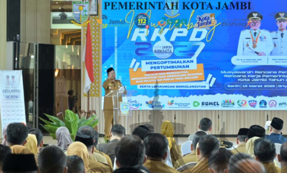 SEPUTARJAMBI.COM-emerintah Kota (Pemkot) Jambi mengggelar Musyawarah Perencanaan Pembangunan (Musrenbang) Rencana Kerja Pemerintah Daerah (RKPD) Kota Jambi Tahun 2027, yang dilaksanakan pada Senin (16/03/2026) di Aula Griya Mayang, Rumah Dinas Wali Kota